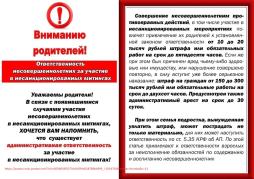 Участие несовершеннолетних в публичных акциях создает угрозу их безопасности и может повлечь административную ответственность для родителей (законных представителей) ст5.35 КоАП РФ